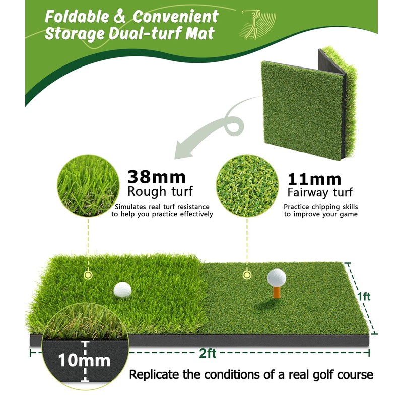 - 【Change Your Practice Routine】The combination of the golf net and the dual-turf golf mat will transform your home into a miniature golf paradise. You can enjoy the convenience of improving your skills from the comfort of your own space, whether it's your backyard, basement, garage, patio, driveway or living room. Say goodbye to unnecessary waste and hello to efficient, cost-effective practice method that fit seamlessly into your lifestyle.