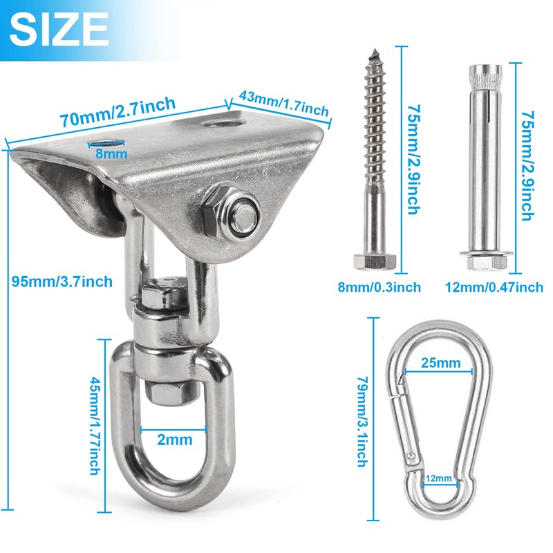 - 360° Rotating hook: The all-round swivel design further simplifies installation and use, freeing any bracket twist or tangles, making it easy and flexible to hang any heavy hanging equipment widely.