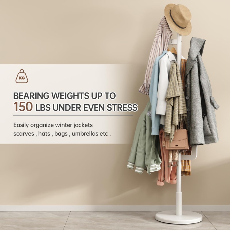 - 【STABILITY & STURDY】 Crafted with a thick rod and a broad, heavy-duty base, our coat tree freestanding is stable and unlikely to tip over, easily supporting heavy winter coats, jackets, and more. It fits into living rooms, entryway, bedrooms, and offices