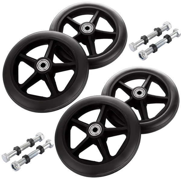 - WIDE APPLICATION: MUXHEL 4-piece wheelchair front wheels are versatile and compatible with a variety of wheelchairs, rollators and walkers. Enjoy the convenience of a universal fit, making it a practical choice for many walkers