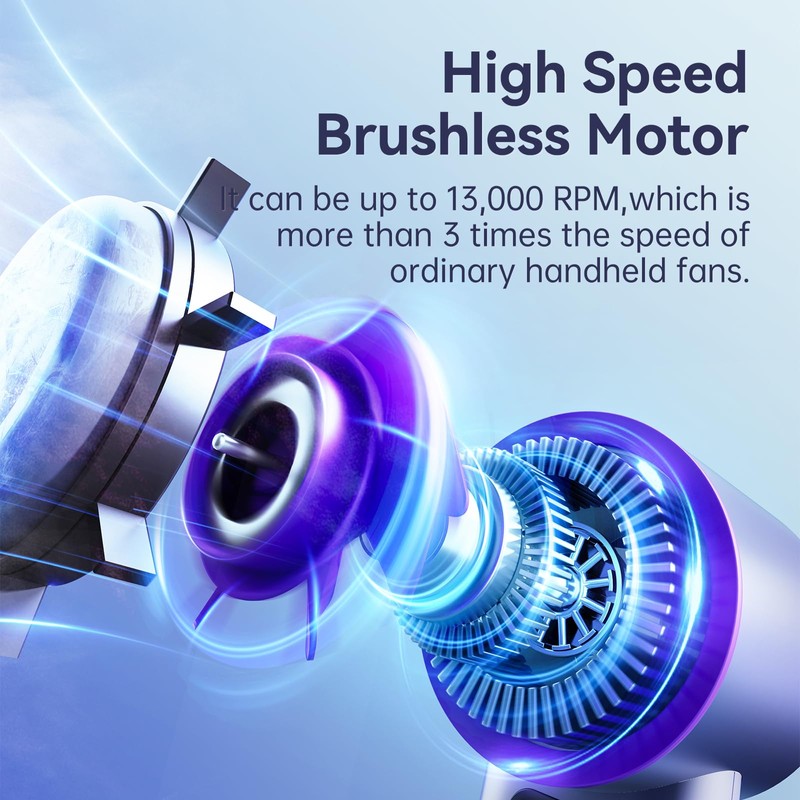 - Turbo Hand Fan : Comes with a 3600mAh usb-c chargeable battery(lasting twice larger than a normal electric hand fan), provides 3-14 hrs duration (depending on different speeds,Whether the cooling mode is enabled)