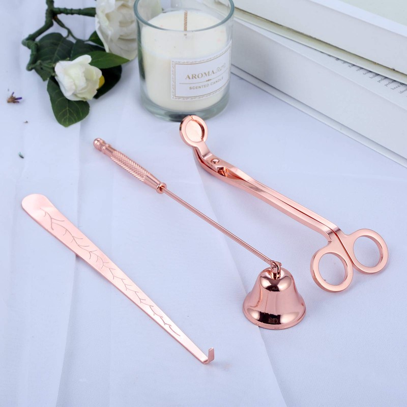 MUXSAM 3Pcs Rose Gold Candle Accessory Set Includes Candle Snuffer, Candle Wick Trimmer & Candle Core Hook - Candle Care Kit -Candle Stainless Tools Pack
