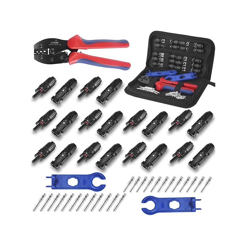 MUYI 47pcs Solar Panel Replacement Tools Kits, 10 Pair Solar Connectors and 2pcs Spanners Wrench with 1-Piece Wire Crimper for 13-10AWG Cable (2.5/4/6mm²)
