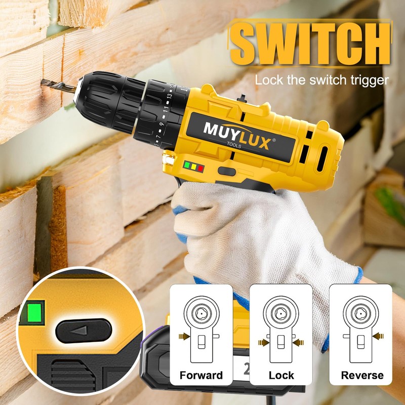 - Variable Speed and Forward/Reverse Switch: This cordless power drill offers precise control with adjustable speeds and forward/reverse settings. And the maximum no-load speed of the cordless battery power drill is 1400 RPM. Use it as a destornillador eléctrico or hand drill for versatile applications. A key addition to any power tool set.