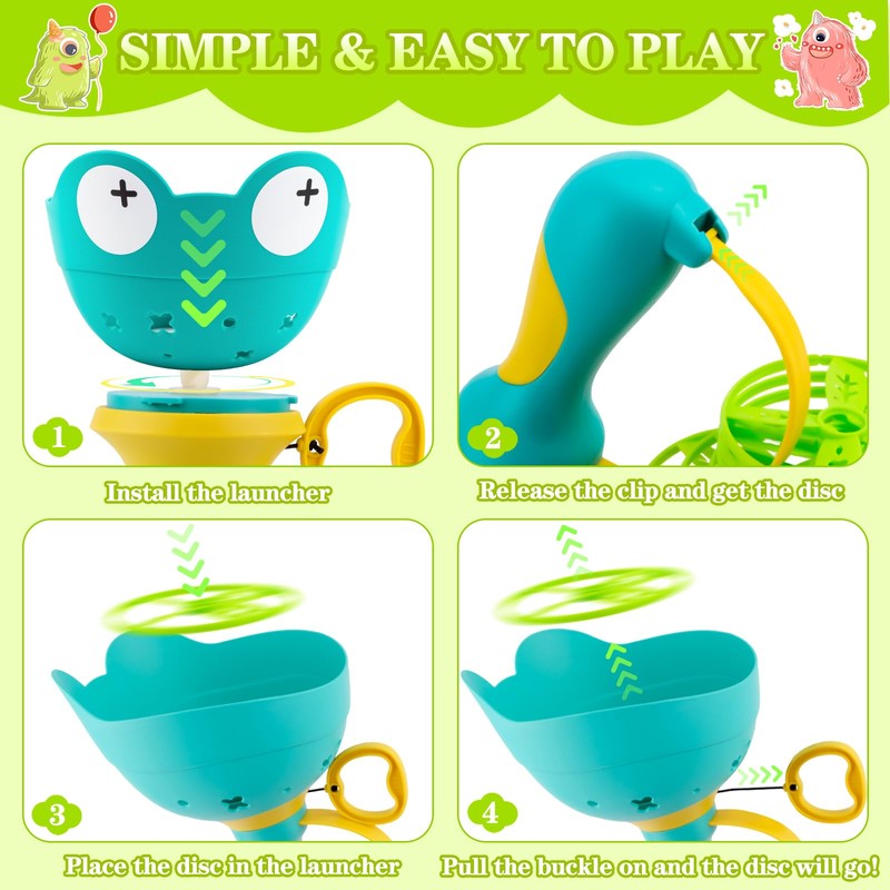 - Easy and uncomplicated: To use the propeller toy children, you just need to connect the base and the starting ramp, pull the hand strap and the disc flies out. Whether in the yard, garden, park at home or outdoor camping, your children can have fun playing with the discs flying saucer launcher at any time. Whoever catches the most slices wins!