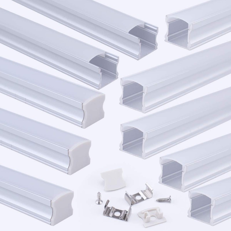 - PACKAGE INCLUDED--10PCS Led Strip Aluminum Channel/Extrusions/Profiles/Track come with 10pcs Frosted milky white diffuser covers, each segment is 1meter/3.3ft, total 10M, 20pcs end caps, 20pcs mounting clips, 20pcs screws