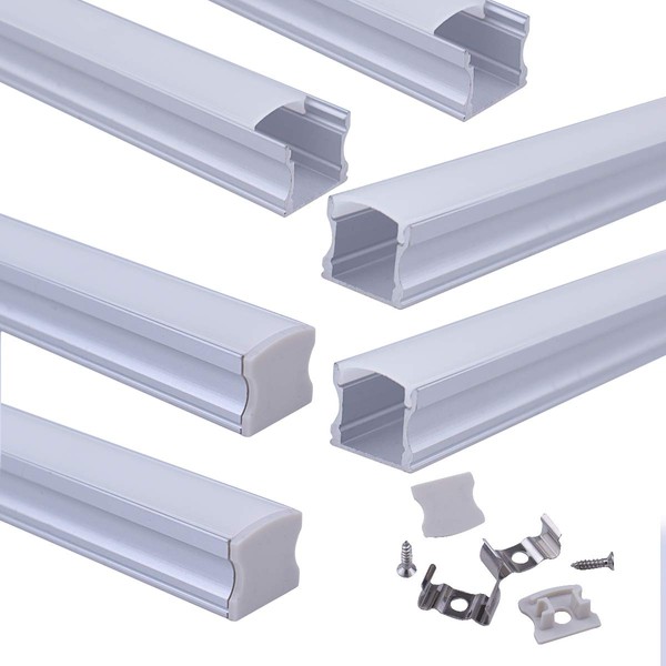 - PACKAGE INCLUDED -- 6PCS Led Strip Aluminum Channel/extrusions/profiles/track come with 6pcs Frosted milky white diffuser covers,each segment is 1meter/3.3ft ,total 6M ,12pcs end caps,12pcs mounting clips,12pcs screws