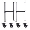 MUZIK 32 Inch Metal Table Legs with Casters, Black Painted Industrial Pipe Counter Bar Height Table Leg, 1 in Pipe, 32 in H x 14 in W, 2 Pack
