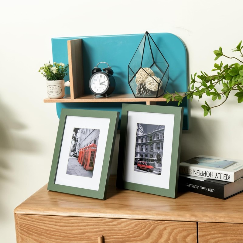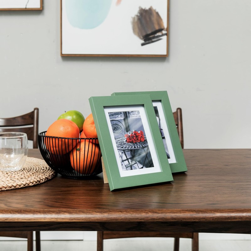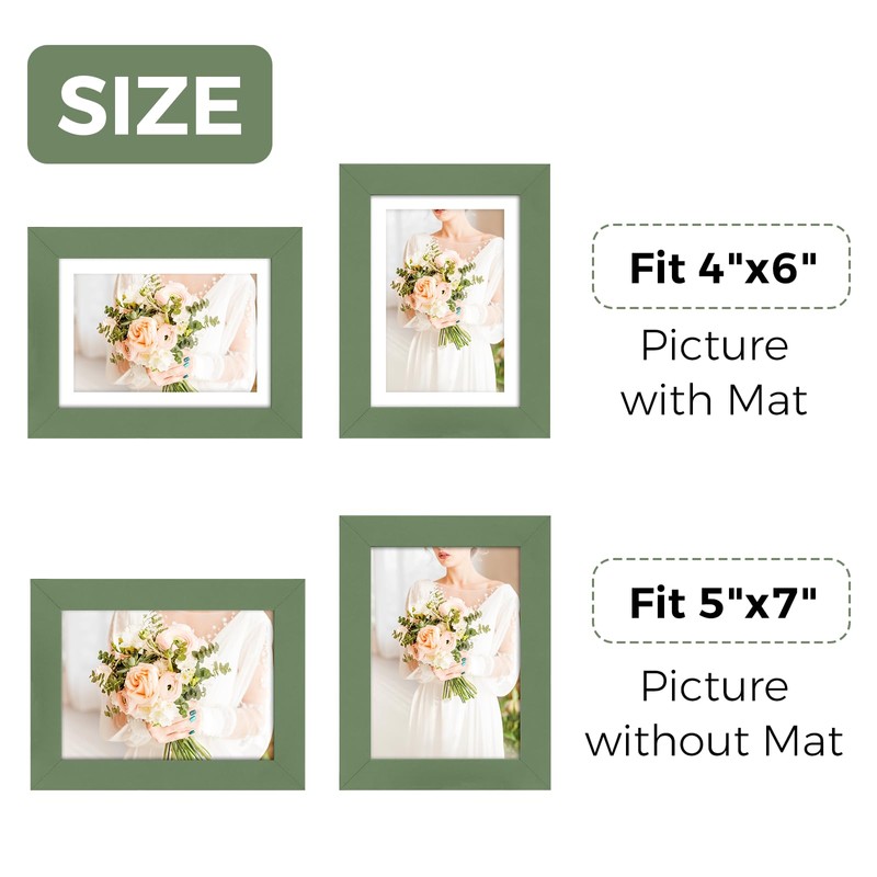 Muzilife 5x7 Wood Picture Frame Flat Set of 4 Display Pictures 4x6 with Mat or 5x7 Without Mat, Green