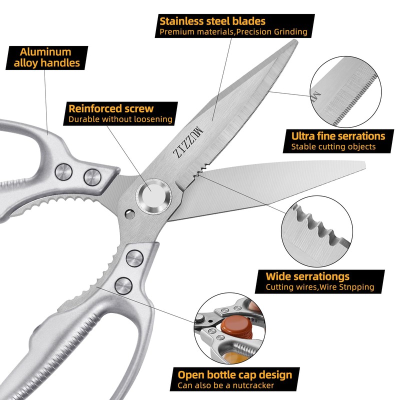 muzziz Muzziz Heavy Duty Scissors,All Purpose Utility Scissors,Stainless Steel Blade with Small Serrations Metal Handle Shears for Home,Office,Easy Cutting Cardboard,Fabric,Leather,Wires,Carpet and Rope