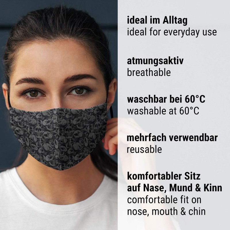- Quality material: the Maskworld motif masks are made of high-quality materials - dirt-repellent, durable polyester with borderless print on the outside is combined with soft, comfortable cotton on the inside.