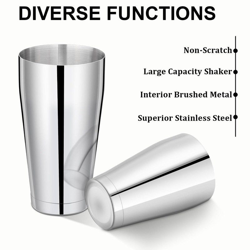- 8Pcs Cocktail Shaker SetThe box contains 4 set two-piece construction: 4 pcs large tin 28 oz and 4 pcs small tin 18 ounce for mixing and shaking. This bar shaker set contains everything you need. The quantity of the set is enough for you to give as a favor, take away or use at home