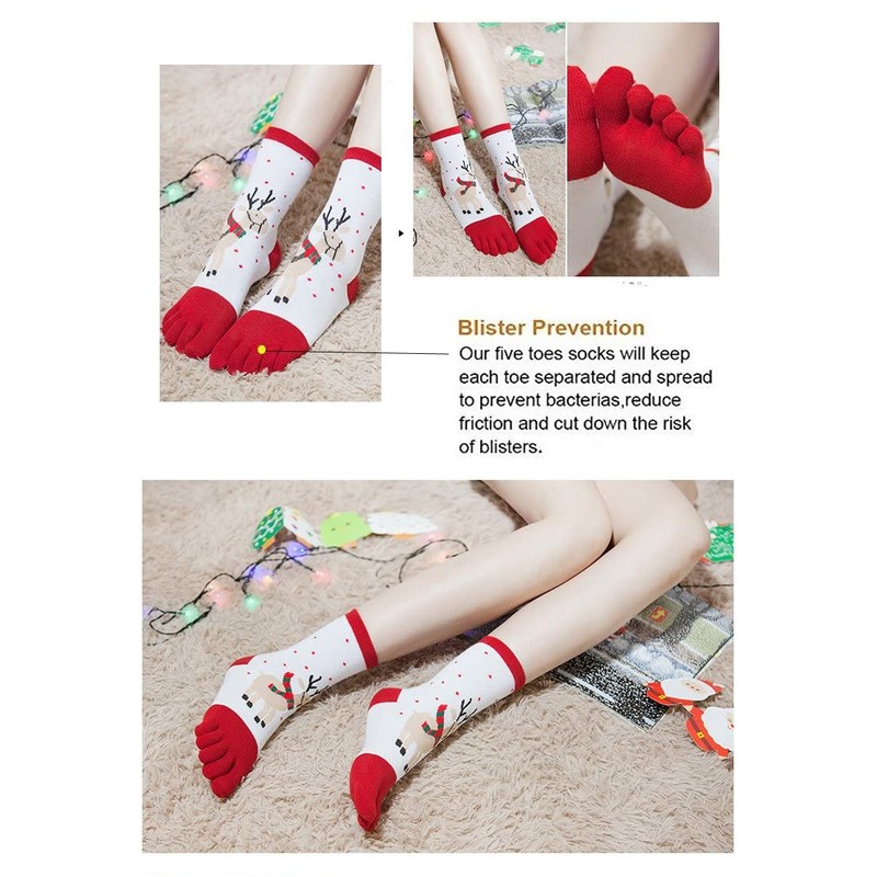 MWMart Christmas Socks with Toes Cotton Crew Xmas Five Finger Bed Socks Unise...