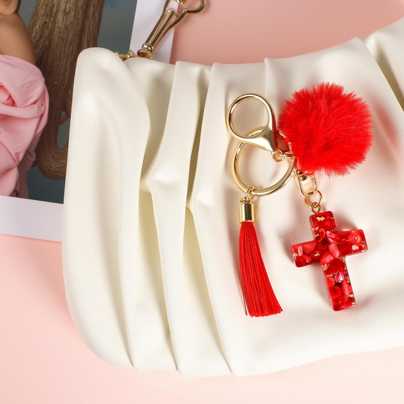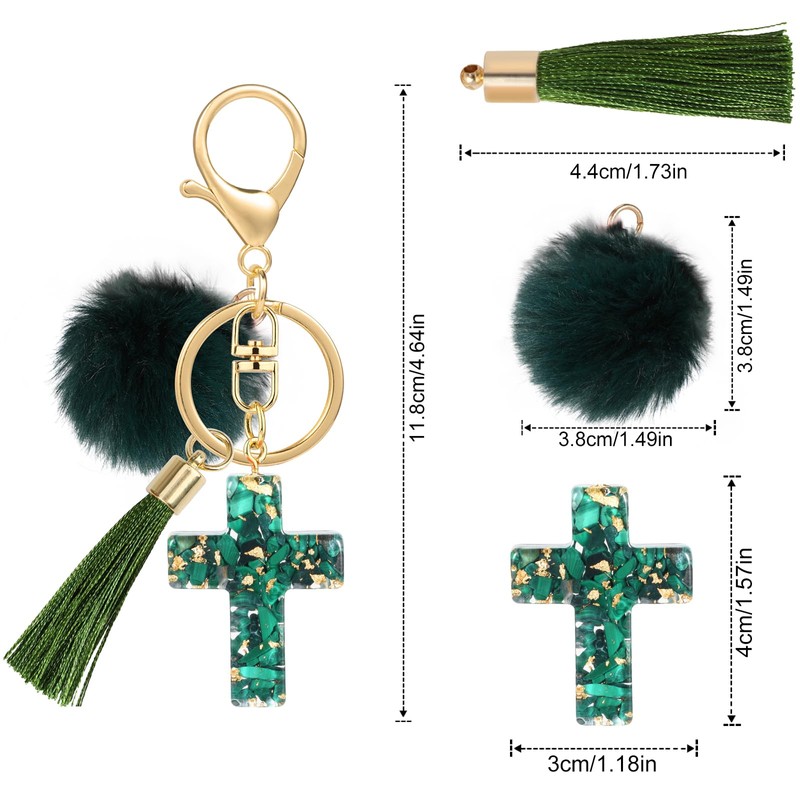 • Cross keychain: delicate tassels, fluff balls and cross design, the cross with shells and gold foil, bright and shiny, immediately catches the eye;