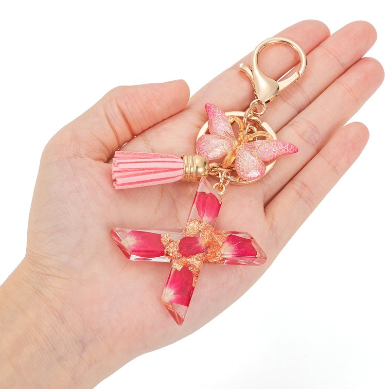 - Chic Design: The resin letters are embedded with pink petals and gold foil. The alphabet keychain comes with a pink gradient butterfly tassel pendant to satisfy your DIY decorative needs. You can also remove it to change the location of the tassel.