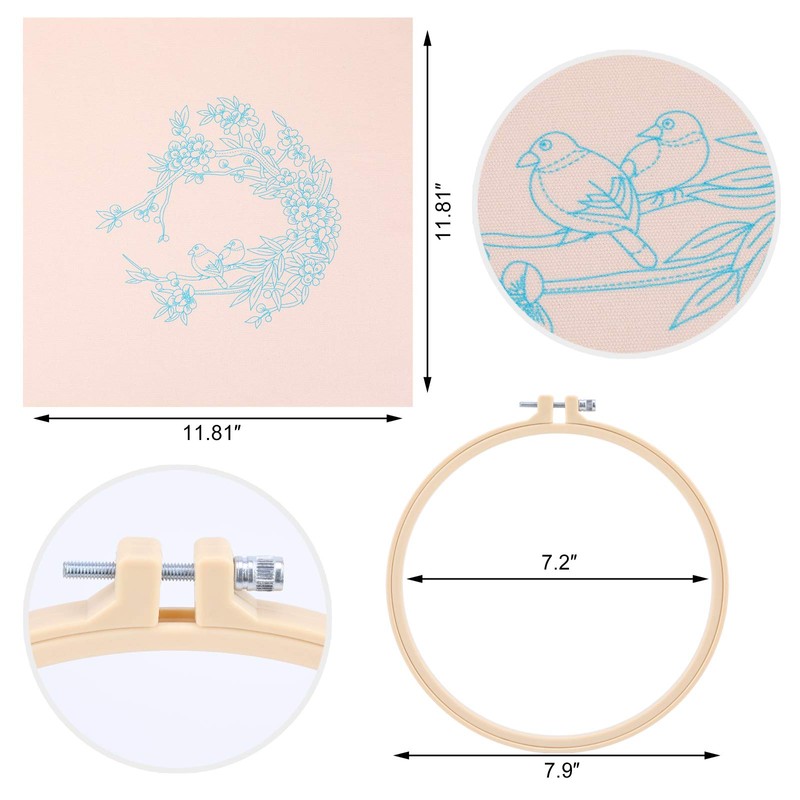 - Embroidery Kit Contents: 1*embroidery cloth,1*embroidery hoop,1*English instruction,2*embroidery needles,embroidery threads of different colors,just with this kit, you can finish a pretty embroidery.