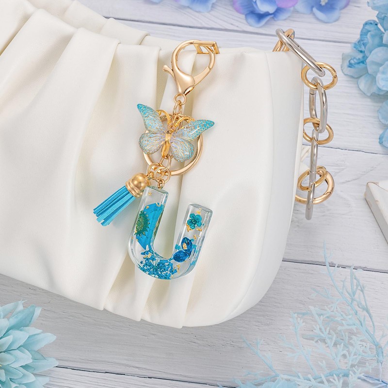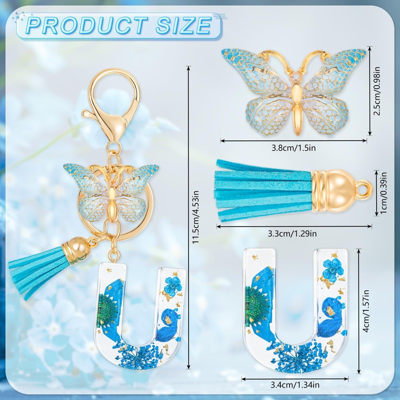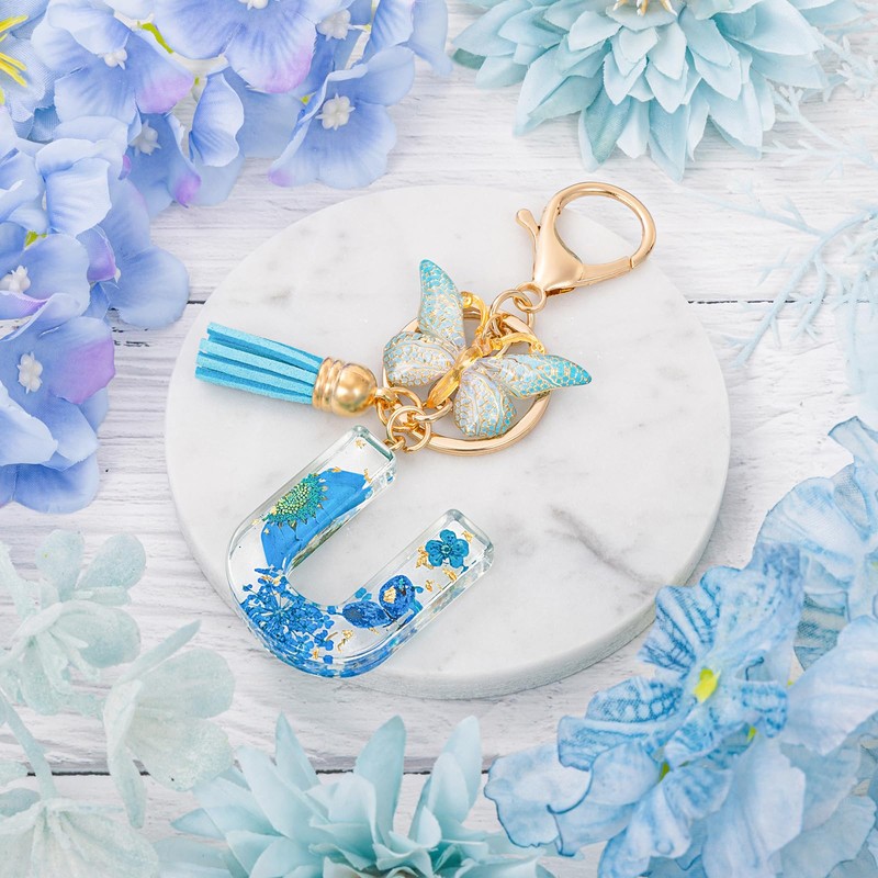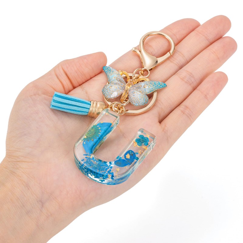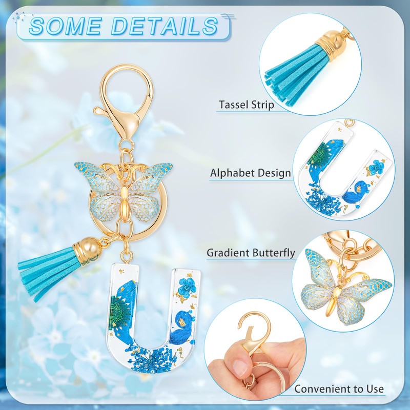 - Delicate Design: The resin letters are embedded with blue petals and gold foil. The alphabet keychain comes with a blue gradient butterfly tassel pendant to satisfy your DIY decorative needs. You can also remove it to change the location of the tassel.