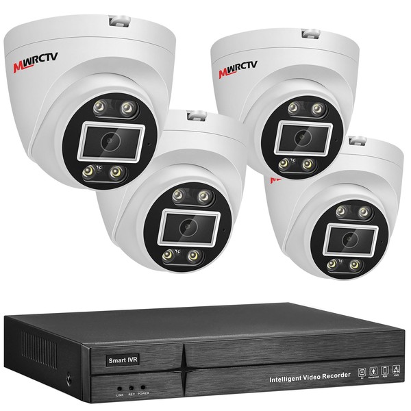 MWRCTV 2-Way Audio PoE Security Camera System,4pcs Wired 4MP Dome IP Camera for Home Security,110°Wide Angle Lens,Smart Dual Light,Human&Vehicle Detection,8 Port 16CH 4K NVR,24/7 Recording(No HDD)