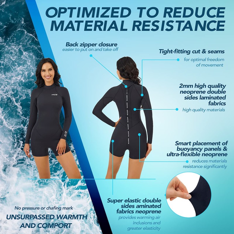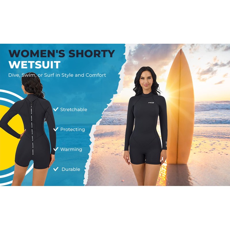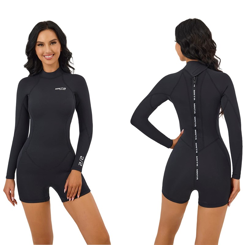 - Perfect for Multiple Scenarios: MWTA long-sleeve wetsuit for women with flatlock stitching and seamless underarms is delicate on the skin to provide unrestricted stretch in the surf and ensure comfort. The women's shorty diving suits are suitable for many water sports, such as diving, surfing, snorkeling, paddle boarding, kiteboarding, wakeboarding, kayaking, sailing, lake activities, and beach days.