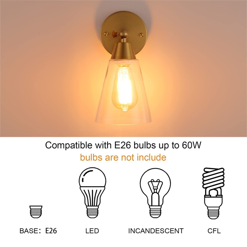 - 【Design】Brass wall light is stylish cone lampshade shape, combination of minimalist geometry and elegant streamlines, breaks the visual balance of the space and creates a high-level decorative interest.