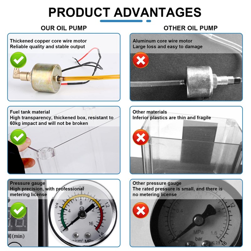 - 【Long Work Life】: This 110V dogital digital controll oiler pump has low voice, high efficiency, high quality pump, thicker tank, corrosion resistance and impact resistance