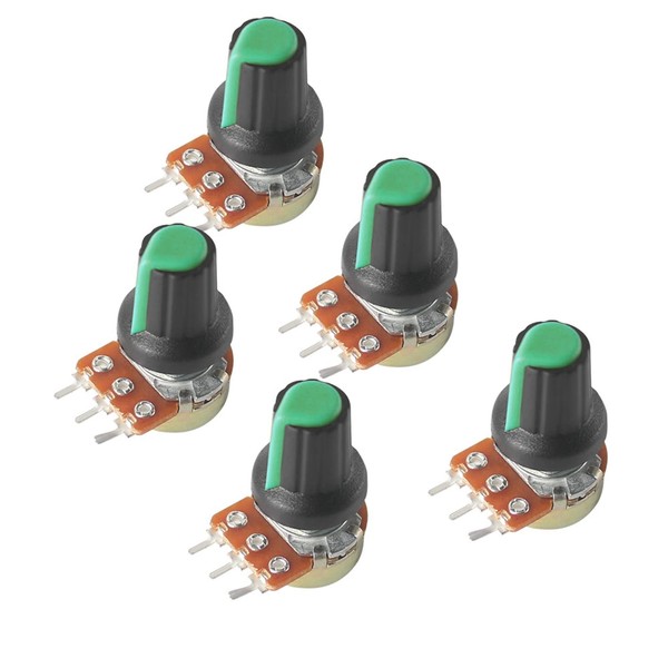 MXITA 5Set WH148 Linear Rotary Taper Potentiometer 3Pin 1K-1M Ohm Variable Resistors 15mm Shaft with Green AG2 Knobs,Nuts and Washers (Size : 2K Ohm)