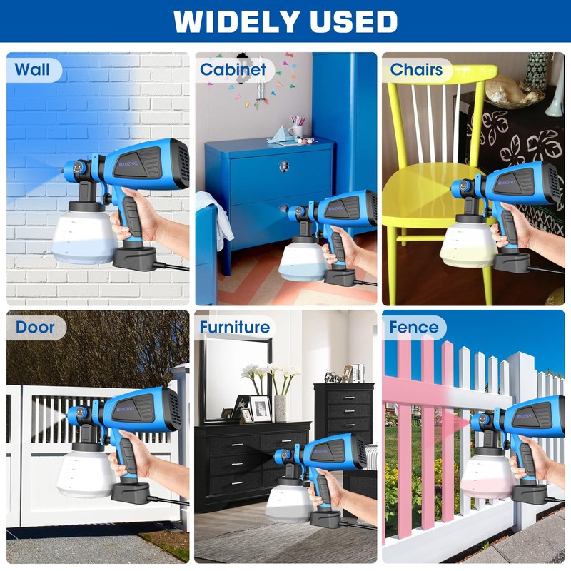 - Wide Applications: Whether you need to paint fences, furniture, walls, cabinets or even car surfaces, our paint sprayers are suitable for both indoor and outdoor projects