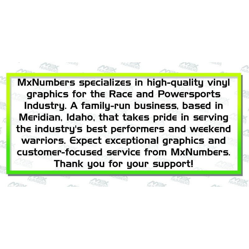 - Proudly Custom Made in the USA: Each decal is crafted with care in our shop in Meridian, Idaho. When you choose MxNumbers, you support a local business and get the original, high-quality design. If it doesn't say MxNumbers, it's an imitation—don't settle for less!