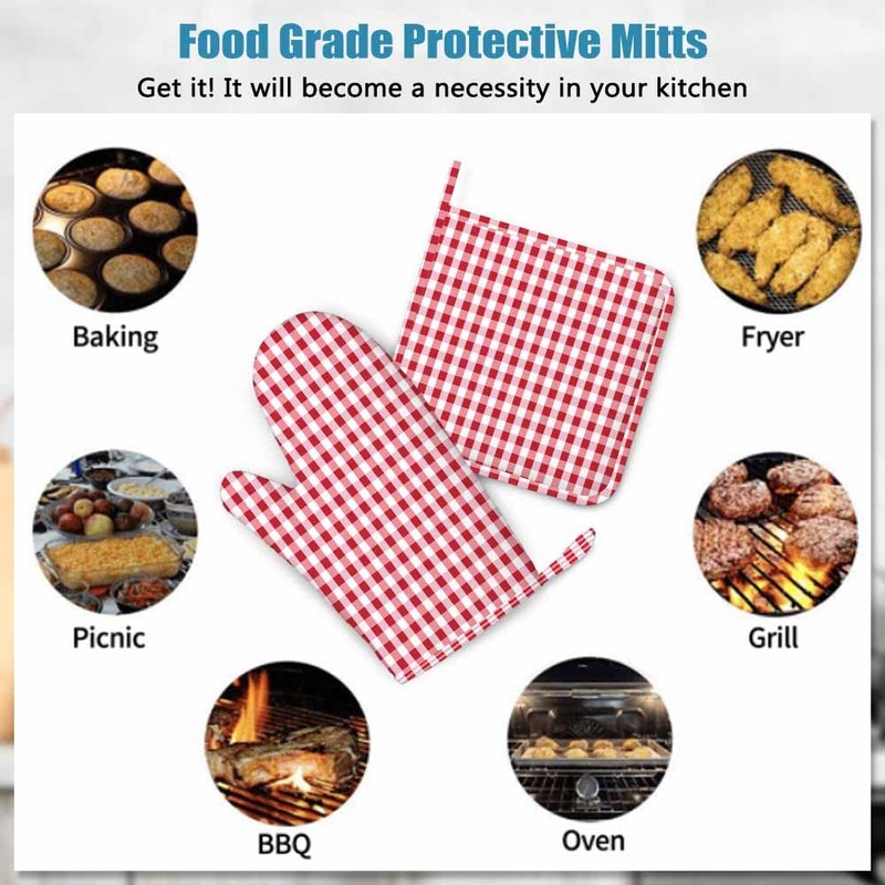 - 【Wide Application】 Oven mitts and pot holders are widely used for cooking, barbecue, microwave oven, soup cooking, oven end dishes. Perfect for all cooking uses. Suitable for home kitchen, restaurant, hotel, baking shop, outdoor BBQ, camping accessories.