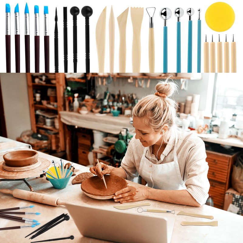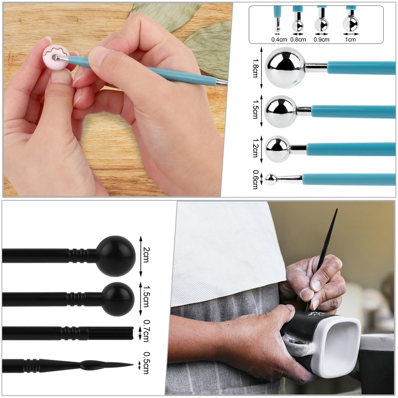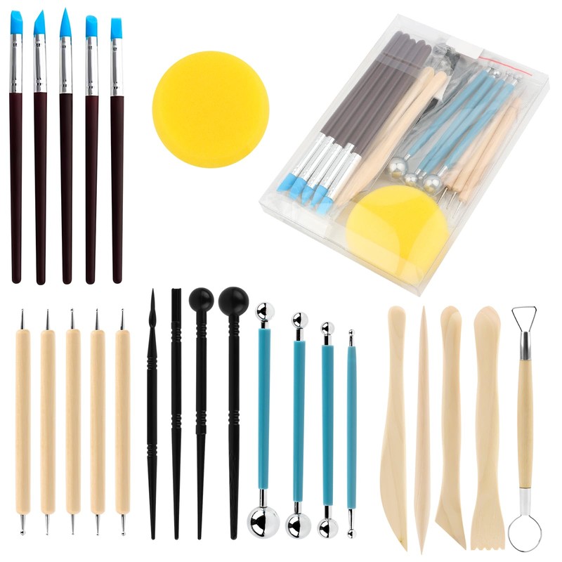 - Ceramic tool set: modelling tool with 24 pieces tools, ball pens with wooden handle in different sizes and shapes, colourful shapers, wood clay tools, plastic ceramic tools, sponge eggs and more. The lightweight and comfortable polymer clay sculpting tools make your designs easier.