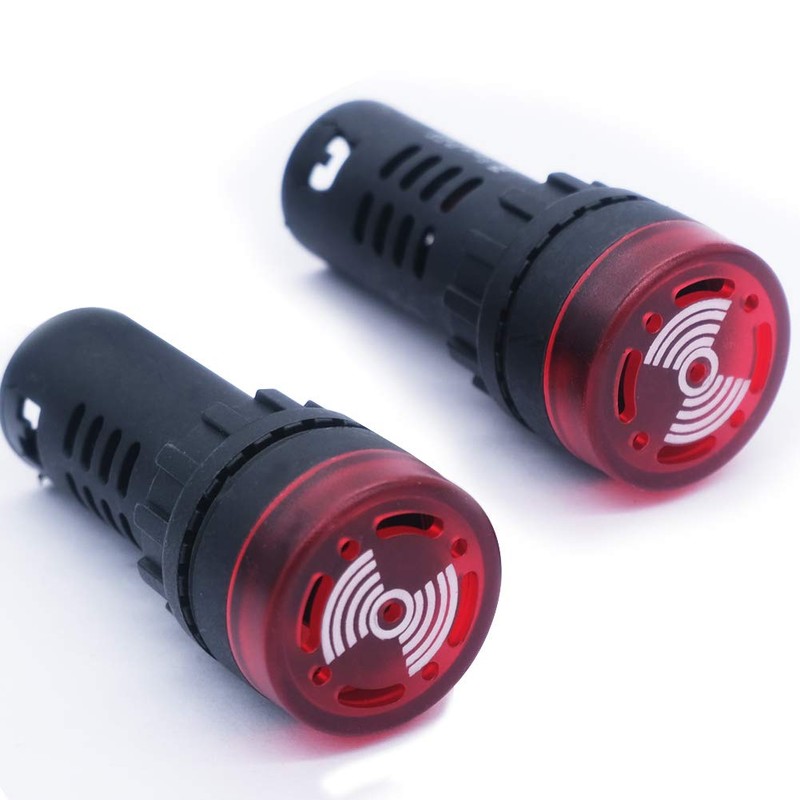 MXUEUK 2pcs 22mm AC/DC 110V Red LED Buzzer Flash Alarm Signal Indicator Light AD16-22SM-RR110V