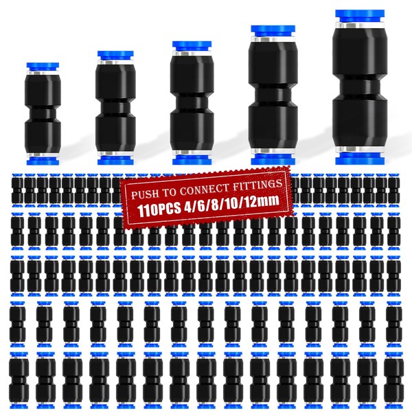 mxuteuk 110PCS Quick Connect Air Hose Fittings,4/6/8/10/12mm Straight Push to Connect Fittings,Air Line Fittings Push to Connect Fittings for Tube