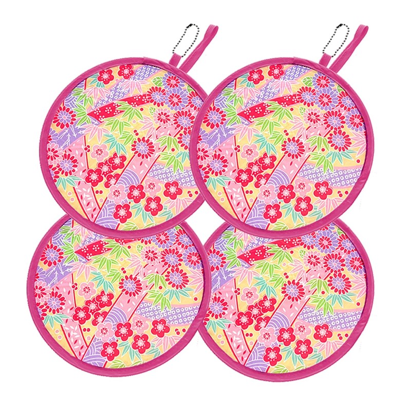 MXY Fold Fan Round Foldable Fans Handheld Summer Folding Fan Collapsible Hand Fan Portable for Daily Use Party Wedding Home Outdoor Concert and Personal Decoration (4 Units Leaf Cherry Blossom)
