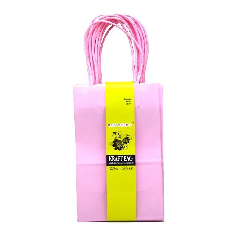 These 12 Kraft paper bags with handles are the perfect addition to any party or event. The bags come in a beautiful shade of pink and are small enough to be used as gift bags. Made of durable material, these bags are perfect for carrying small items such as trinkets, party favors, and gifts.