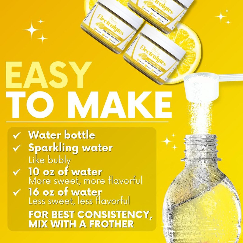 - Sweetened With Stevia- Enjoy the luscious taste of lemon candy electrolytes without any added sugars. Our electrolight powder is thoughtfully sweetened with Stevia, providing a guilt-free way to stay hydrated and indulge in a sweet treat. It's the perfect balance of flavor and health, making it a family-friendly choice for all.