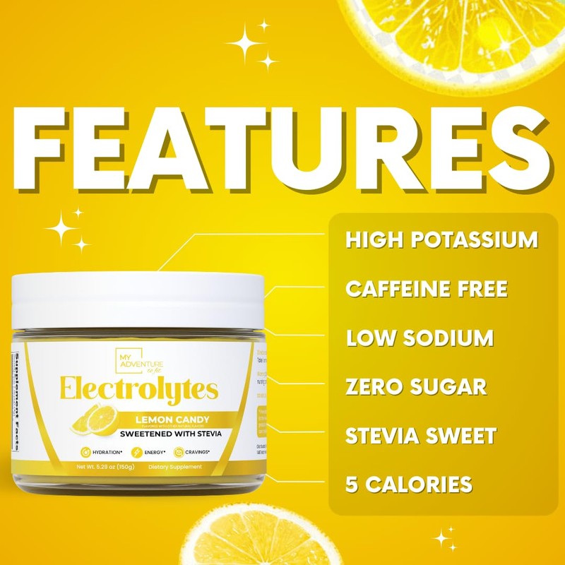 - Quench Your Thirst - Dive into the ultimate hydration experience with our Lemon Candy Electrolytes Powder. Perfectly crafted to replenish your body, this electrolytes powder no surgar formula ensures every sip is filled with the goodness of electrolytes, making it your go-to hydration partner. Whether you're tackling intense workouts or just need a refreshing drink, our lemon candy electrolytes deliver on taste and hydration.