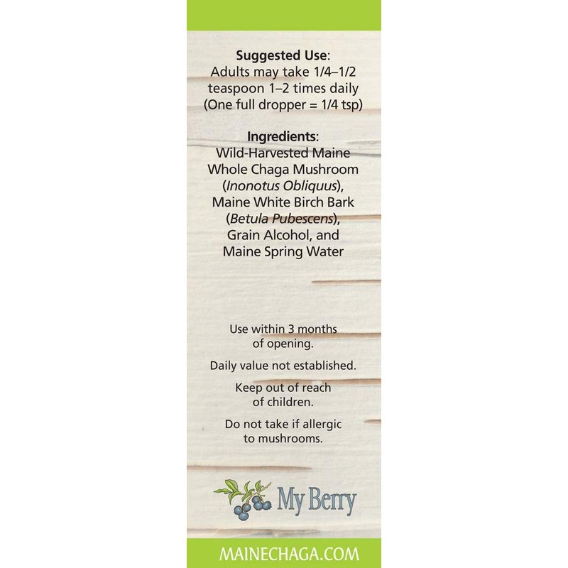 My Berry Organics Chaga Mushroom Extract Liquid, Wild Harvested & Double Extracted Maine Chaga, 2oz, No Pesticides
