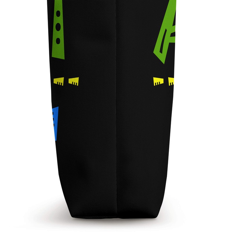 - 16” x 16” bag with two 14” long and 1” wide black cotton webbing strap handles.