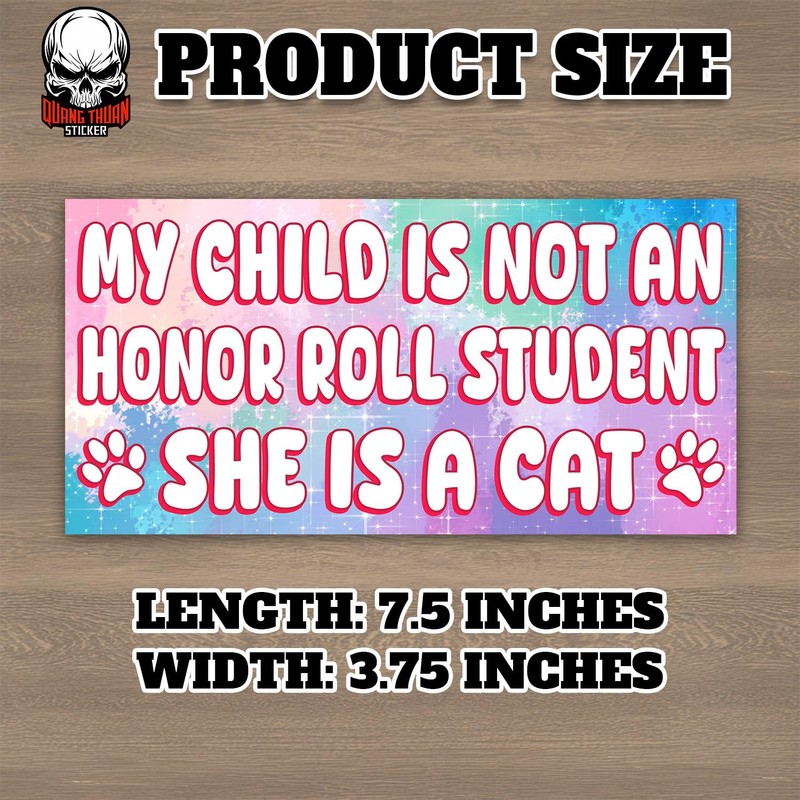 My Child is Not an Honor Roll Student She is a Cat | Bumper Sticker or Car Magnet | Sarcastic Funny Driver Magnetic Bumper Sticker for Cars [7.5x3.75]