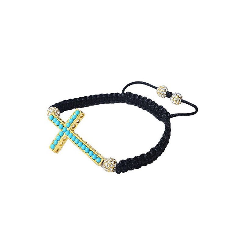 My Daily Styles Gold-Tone Cross Turquoise-Tone Blue Green Beaded Adjustable Macrame Bracelet