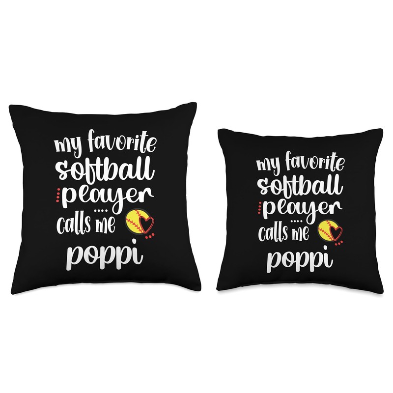 My Favorite Softball Player Calls Me Poppi Father's Day Throw Pillow