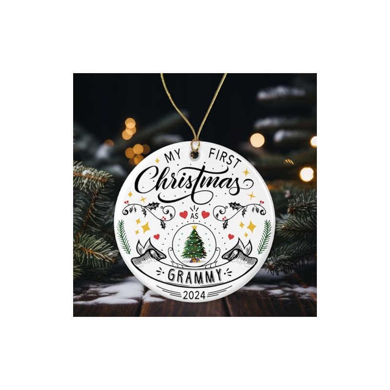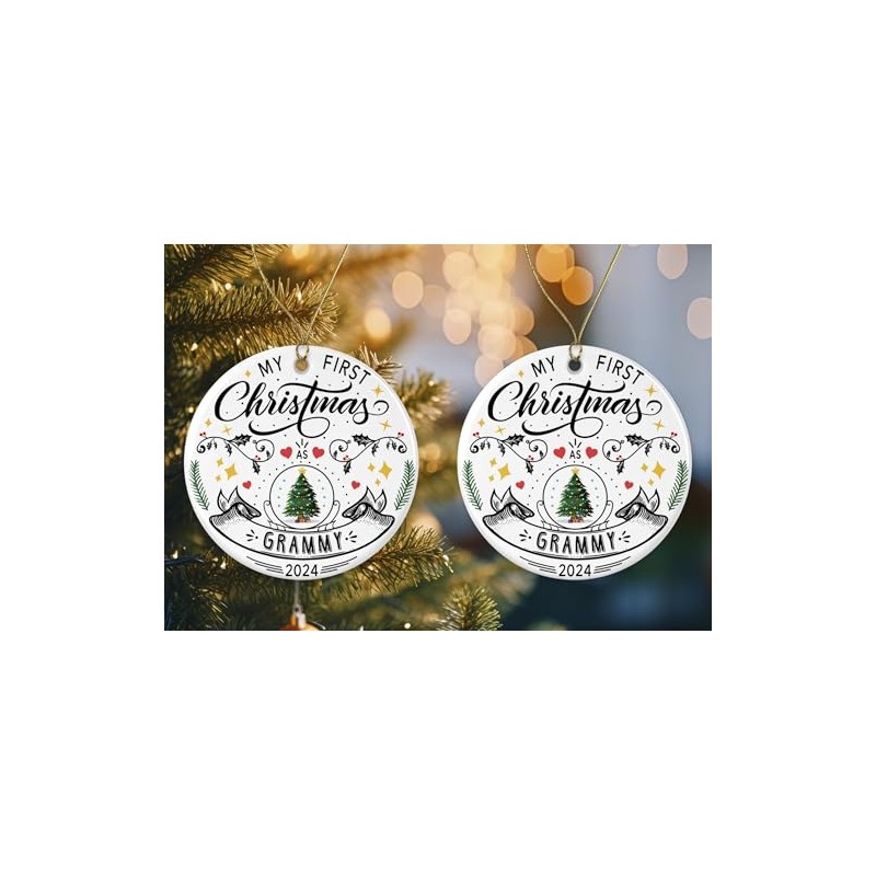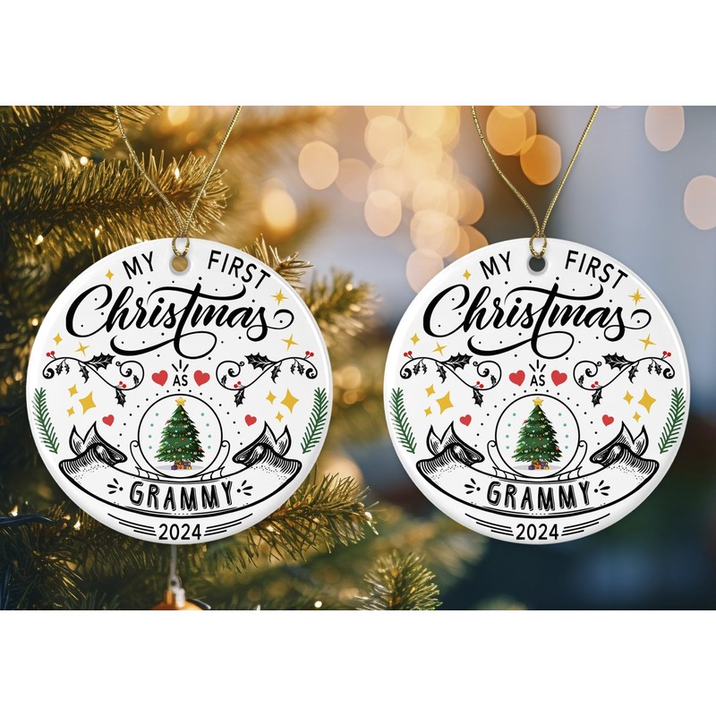 My First Christmas As Grammy 2024 Ornament - 1st Christmas As Grammy - New Grammy - Promoted to - Pregnancy Announcement - Decoration Gift for Xmas Holidays Printed on Both Sides