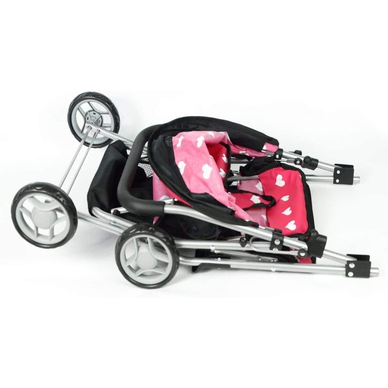 My First Doll Twin Stroller - Cutest Heart Design Doll Twins Stroller - Great Toy Gift for Girls