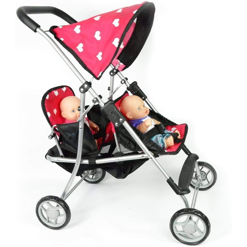 My First Doll Twin Stroller - Cutest Heart Design Doll Twins Stroller - Great Toy Gift for Girls