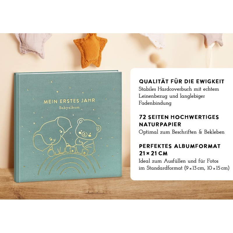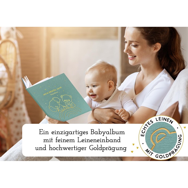 - Capture unforgettable moments: on 72 pages, the Herzthaler baby album for the first year of life with high-quality gold embossing offers plenty of space to fill in, design yourself, for the most beautiful photos, milestones and memories.