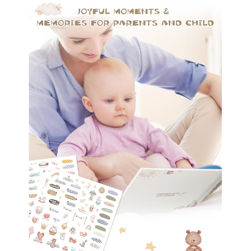 • 📖 Complete First Year Journal: Track every magical moment from birth to first birthday with this beautifully illustrated 84-page memory book. Sections for monthly milestones, first times, family, and more – a true treasure chest of memories.