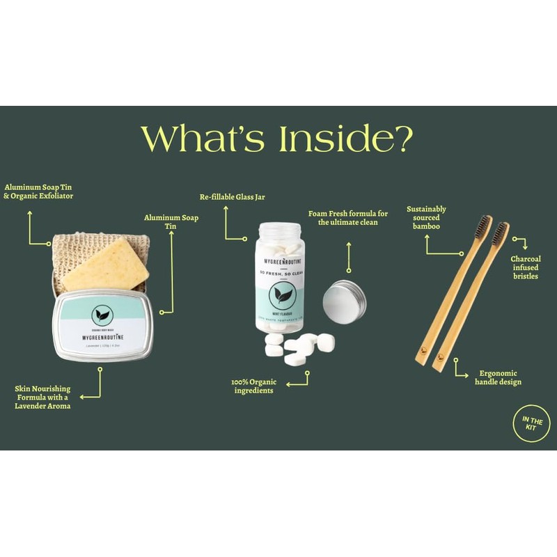 My Green Routine Eco Friendly Sustainable Wash Kit - Starter pack includes Bamboo, Organic and environmentally friendly products - ideal for travel and Birthday