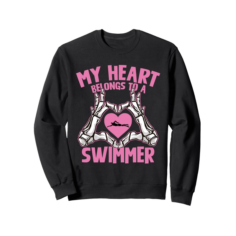 My Heart Belongs To A Swimmer Skeleton Hands Sweatshirt