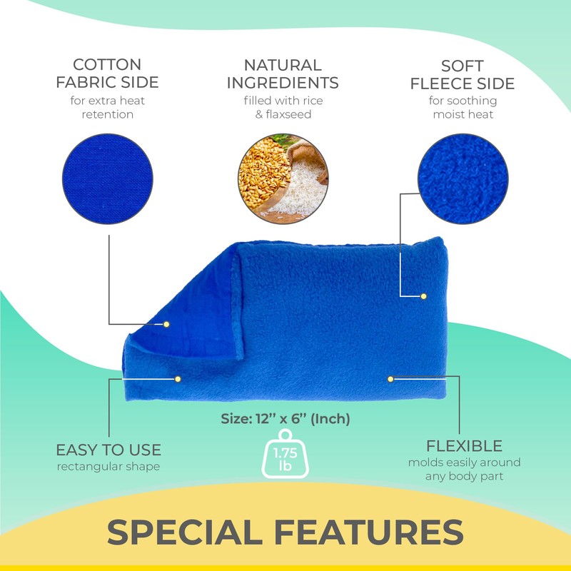 - PREMIUM QUALITY: Each hot therapy heating pad is made using the finest materials available. Our hot microwaveable pads feature a super soft fleece on one side that gently hugs your skin and provides moist warmth, while the cotton on the other can be used for extra heat retention.