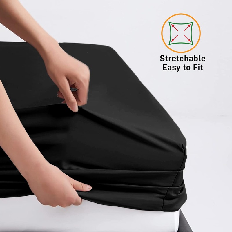 My home store Fitted Sheet 25cm Deep Brushed Microfiber Ultra Soft Non Iron Wrinkle Plain Fitted Sheet Hypoallergenic Breathable Black Super King Sheet